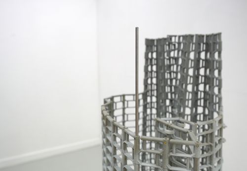 Untitled | Glue, acrylics, filament, wood. 100x30x30cm