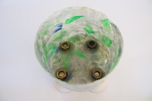 Untitled | Ceramics, plastic, bolts, acrylics, paper, epoxy. 20x15x15cm