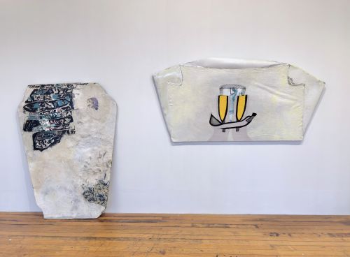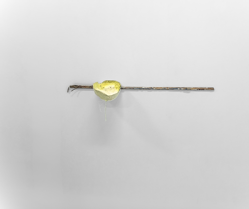 Textile, glue, metal wire, metal plate, paper, acrylics, rubber band,