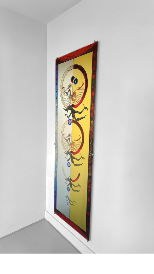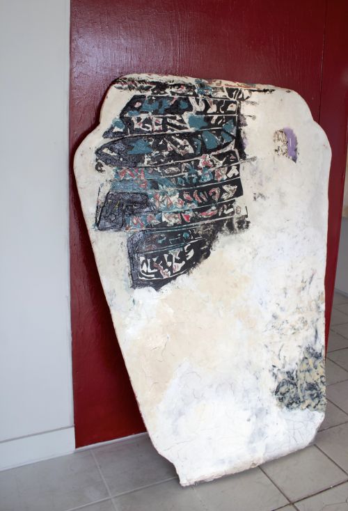Inshango | Textile, glue, wood, screws, acrylics, silicone. 170x126cm