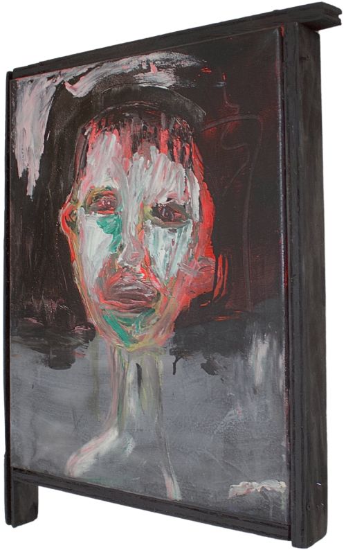 Burning man | Acrylics on canvas, wood, screws. 54x44x5cm